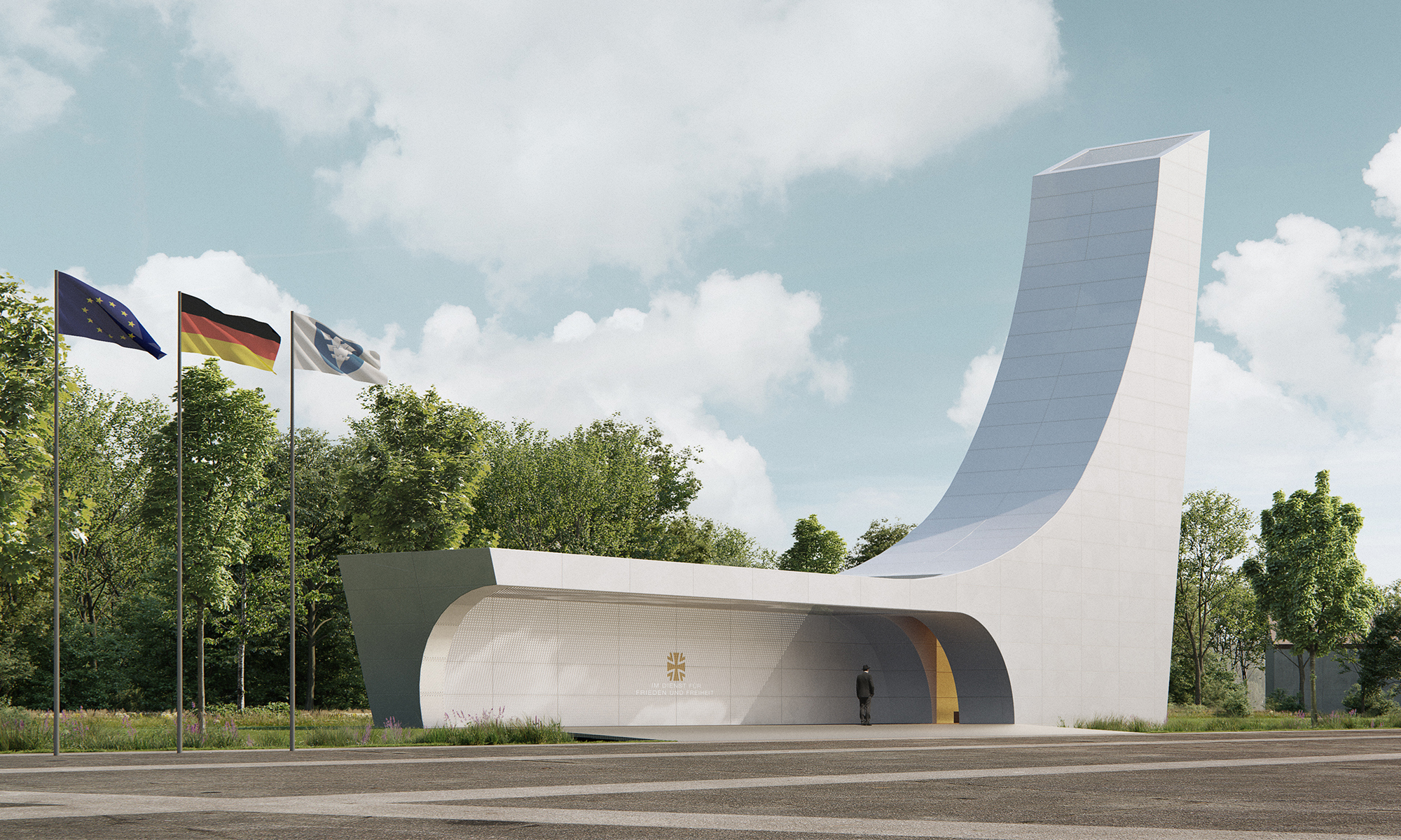 Unser Beitrag zum Wettbewerb für das Ehrenmal der Luftwaffe in der Otto-Lilienthal-Kaserne Roth wurde mit dem dritten Preis ausgezeichnet. Die Jury würdigte unter anderm: „Die Leichtigkeit des stilisierten Flügels und seine großzügig raumgreifende Geste im landschaftlichen Teil der Kaserne schaffen für das Ehrenmal der Luftwaffe einen besonderen Ort am Antreteplatz.“