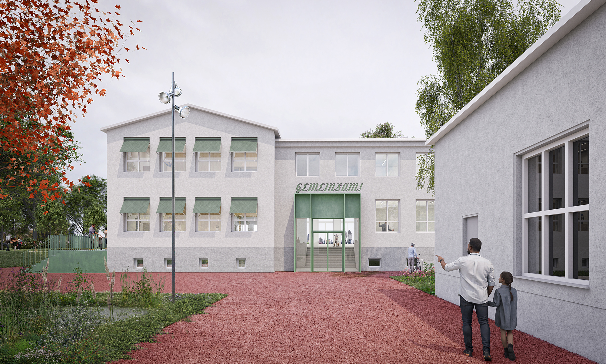 Nördlich des Alexanderplatzes in Berlin am Haus der Statistik soll das neue Rathaus Berlin Mitte entstehen. Städtebaulich orientiert sich der Neubau an seinem baulichen Umfeld. Das Hochhausthema der schmalen und hohen Scheiben mit Sockelzone entlang der Otto-Braun-Straße wird aufgegriffen. Der Hochpunkt fußt auf einem robusten Sockel, gliedert sich städtebaulich in den Höhen der verschiedenen Baukörper und bildet in jede Richtung grüne Terrassen auf den Dachflächen. Der Neubau bedient sich dem Entwurfsprinzip der klassischen Moderne in Basis, Schaft und Kapitell. Der Sockel bildet die Basis mit der Faltung in der Fassade, wobei das Erdgeschoss und die erste Etage in der Höhe zusammengezogen werden. Die darüberliegende Konferenzebene für die Fraktionen mit dem BVV-Saal verstärkt die Faltung im Sturzbereich und zeichnet sich so gesondert in der Fassade ab. Die Faltung wird subtil in den Stützenbereichen über das gesamte Gebäude gezogen und endet im oberen Gebäudeabschluss mit einem Stadtbalkon für die Bevölkerung. Der ikonische Stadtbalkon für die Bürgerinnen Berlins erzeugt mit der umlaufenden Terrasse und der Nutzung als Trauebene mit Café einen identitätsstiftenden Gebäudeabschluss mit Fernwirkung. Das gesamte Haus steht im Kontrast zur Ostmoderne und der Geschichte Berlins bis in die heutige Zeit und wird mit einem wertigen Berliner Travertin bekleidet, wobei die Sockelzone und der Gebäudeabschluss des Natursteins in der Oberfläche bearbeitet sind.